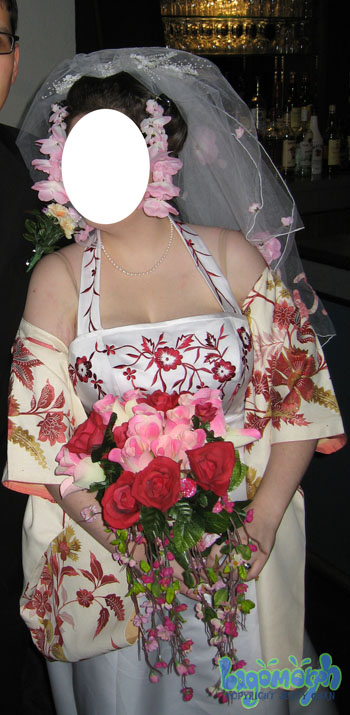 Jettychan also makes custom veils, this veil has the word “Fuck Cancer” sewed on in cherry blossom fabric with cherry blossoms accompanying it to show the bride’s defeat of cancer.