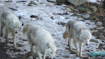 A wolf pack with three gorgeous wolves walking in pack formation. None of Matthew Fish’s photographs have been touched up or edited in any fashion.